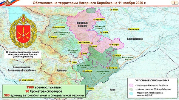 Pink - territory of Artsakh Republic, as per the new ceasefire agreement