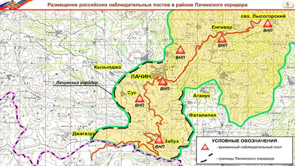 Russian Ministry of Defense published the maps of the Peacekeeper mission deployment and observation points at Karabakh.
